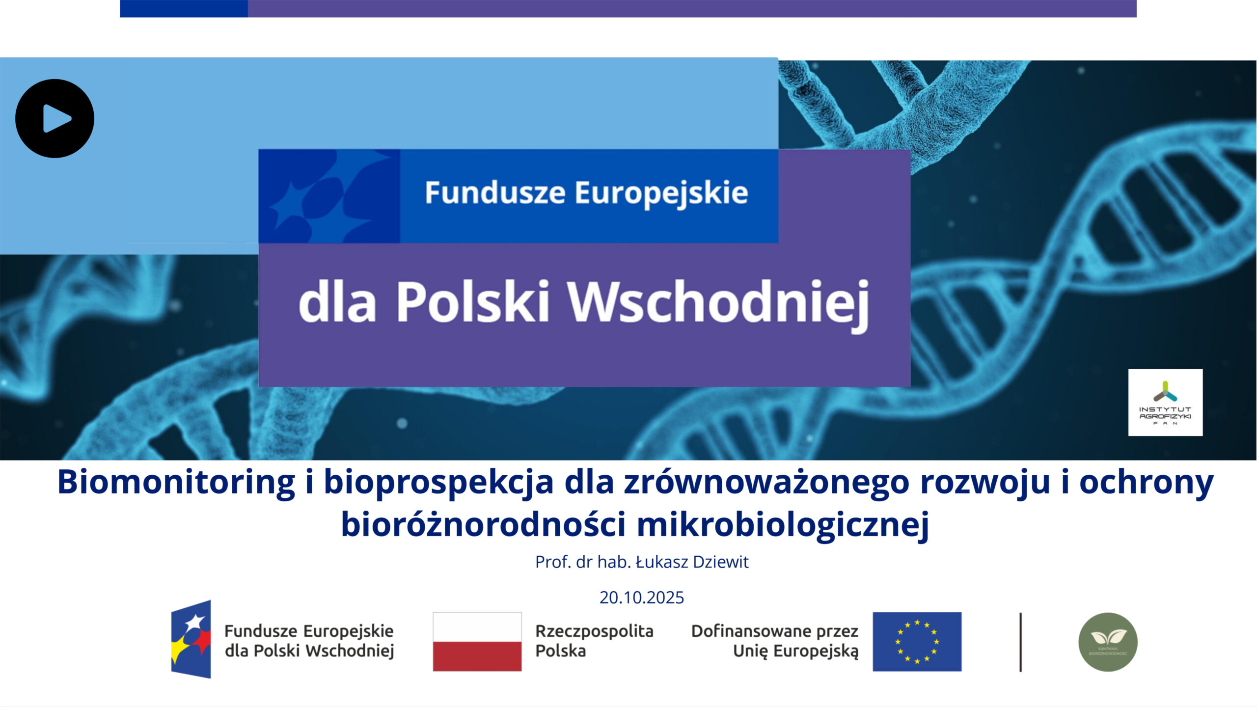 Nagranie wykładu Prof. dr hab. Łukasza Dziewita pt. Biomonitoring i bioprospekcja dla zrównoważonego rozwoju i ochrony bioróżnorodności mikrobiologicznej (20.10.2025)