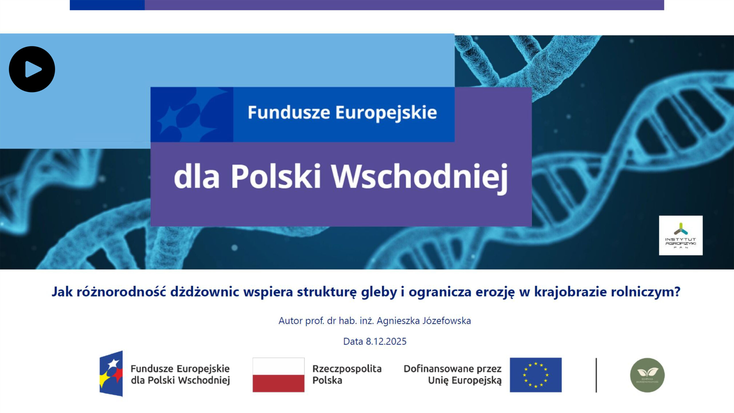 Nagranie wykładu Prof. dr hab. inż. Agnieszki Józefowskiej pt. Jak bioróżnorodność dżdżownic wspiera strukturę gleby i ogranicza erozję w krajobrazie rolnicznym (08.12.2025)