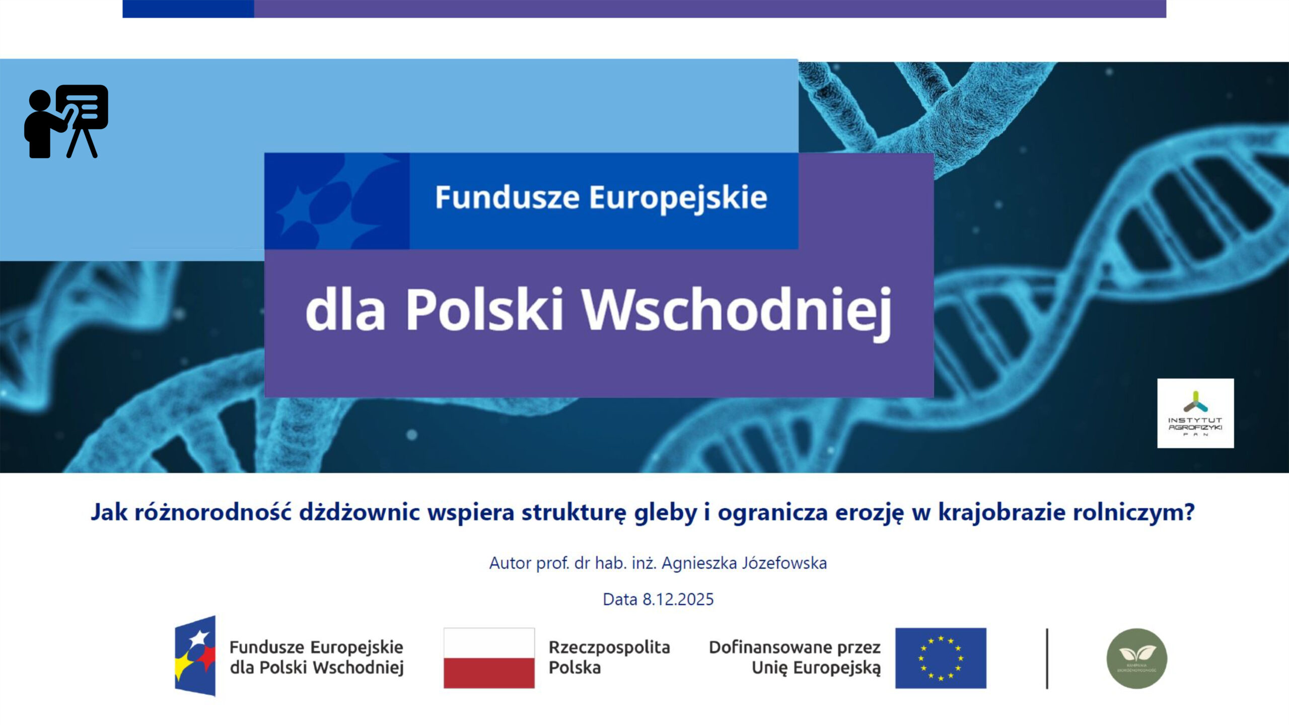 Prezentacja wykładu Prof. dr hab. inż. Agnieszki Józefowskiej pt. Jak bioróżnorodność dżdżownic wspiera strukturę gleby i ogranicza erozję w krajobrazie rolnicznym (08.12.2025)
