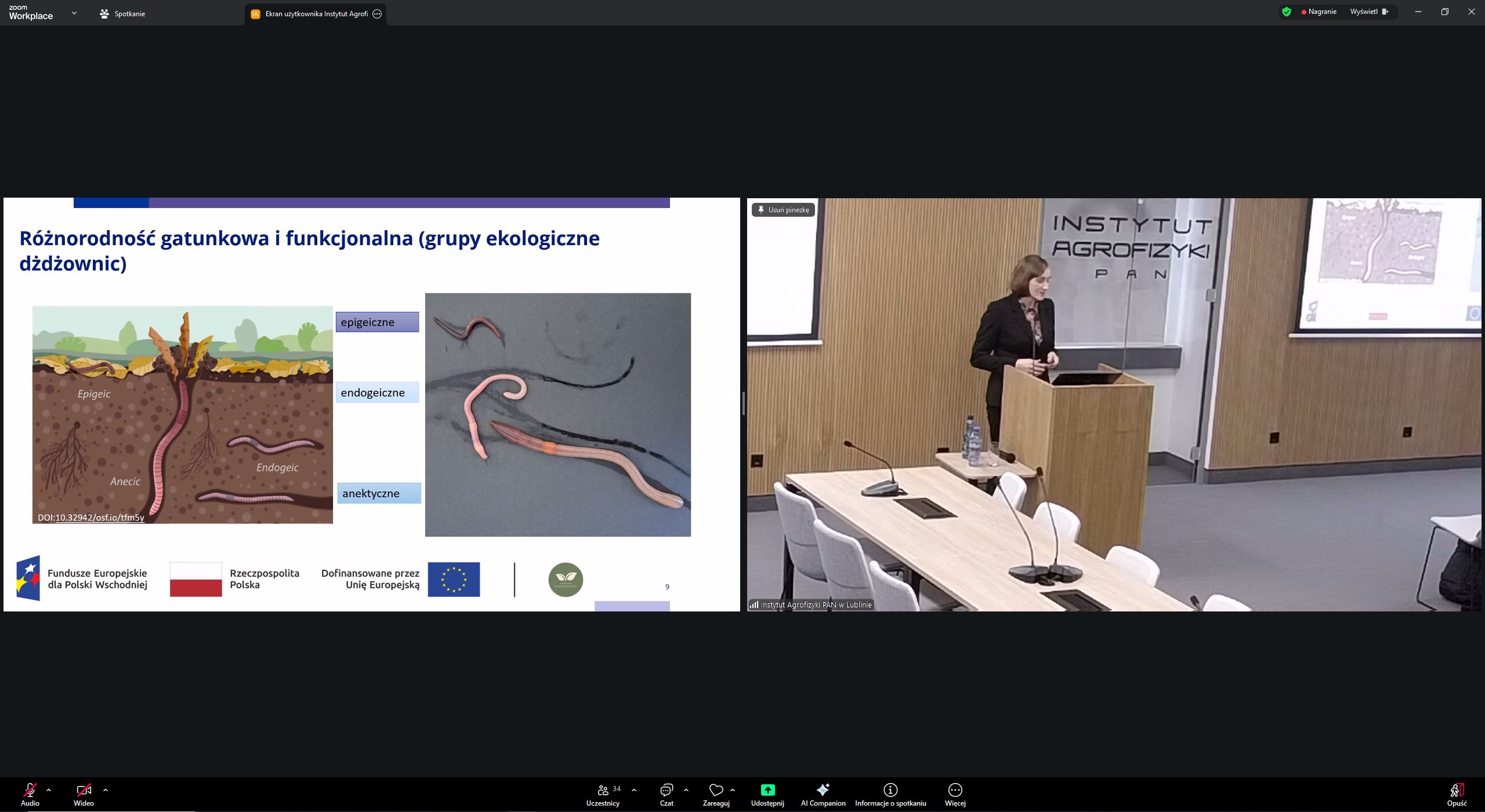 Wykład Pani Prof. Agnieszki Józefowskiej pt. “Jak bioróżnorodność dżdżownic wspiera strukturę gleby i ogranicza erozję w krajobrazie rolnicznym”